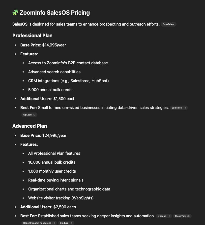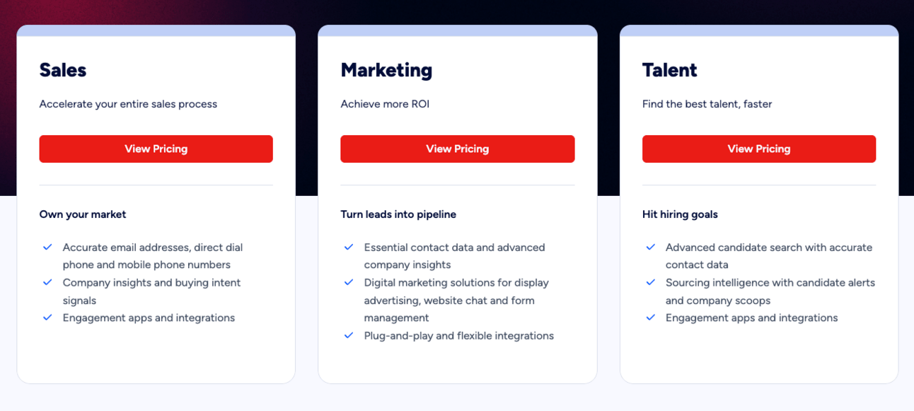 Now AI does it all for us. Take Zoominfo for example. Very little information on the pricing page.