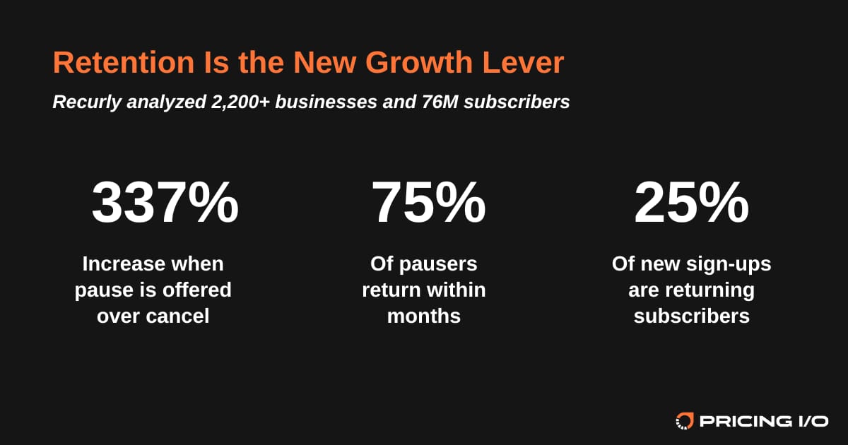 Retention is no longer a “save churn” motion. It is a growth lever. Recurly analyzed 2,200+ businesses and 76M subscribers and surfaced a clear pattern. The best companies build a reversible customer journey, not a cancel cliff. The 3 stats we wanted to highlight from the report: